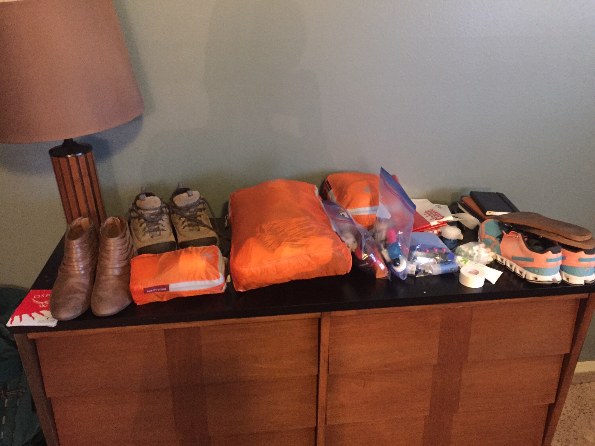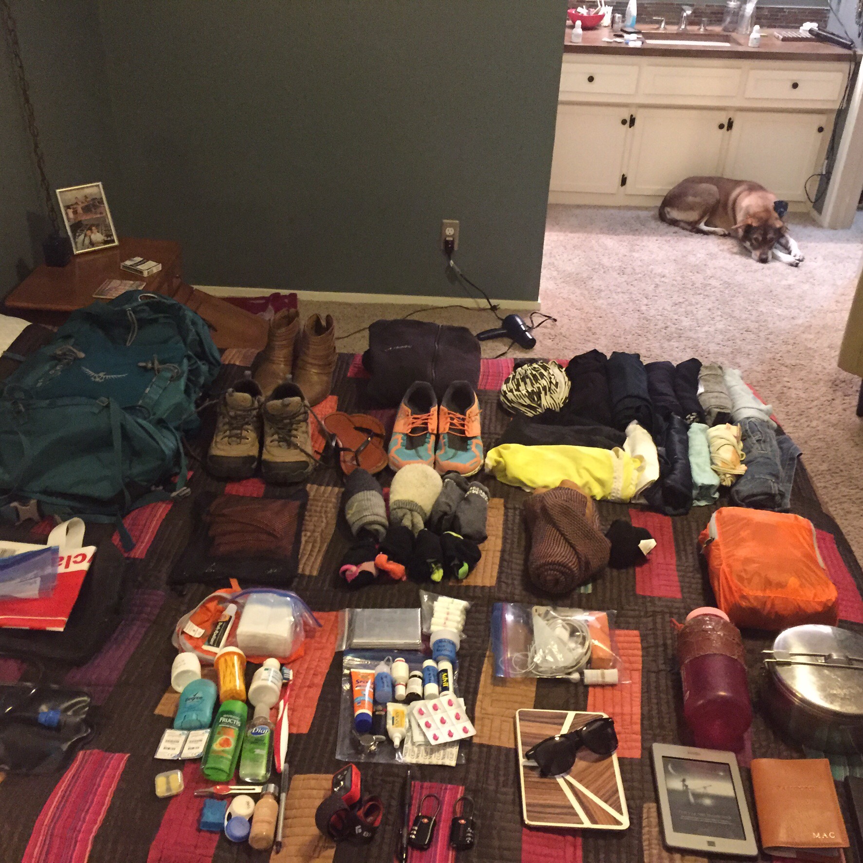 Luckily, I attended the Mike Chance School of Packing for the first 18 years of my life. To reduce the temptation to overpack and lighten my load in the long run, I bought a relatively small pack (46L Osprey). Loaded up, it weighs between 19-23lbs, depending on what I’m wearing and if I’ve got stuff in a carry on. Totally manageable.