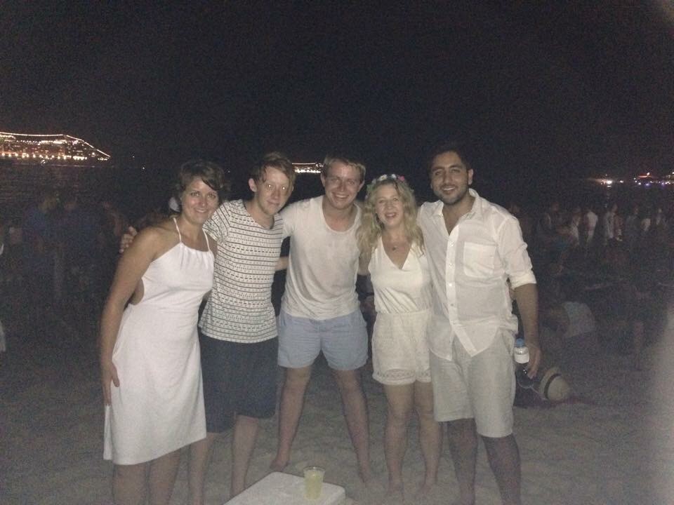 After about an hour and a half both the Aussie girl and I realized that nature would call, and we couldn’t ignore it all night. She went to check out the portapotty situation and deemed the lines unfathomably long. Ocean. White dress…When in Rio. (I was smart enough to to wear bathing suit bottoms). Our cautious exploration was thwarted by a stealth wave and we were both soaked. Neither of cared :).