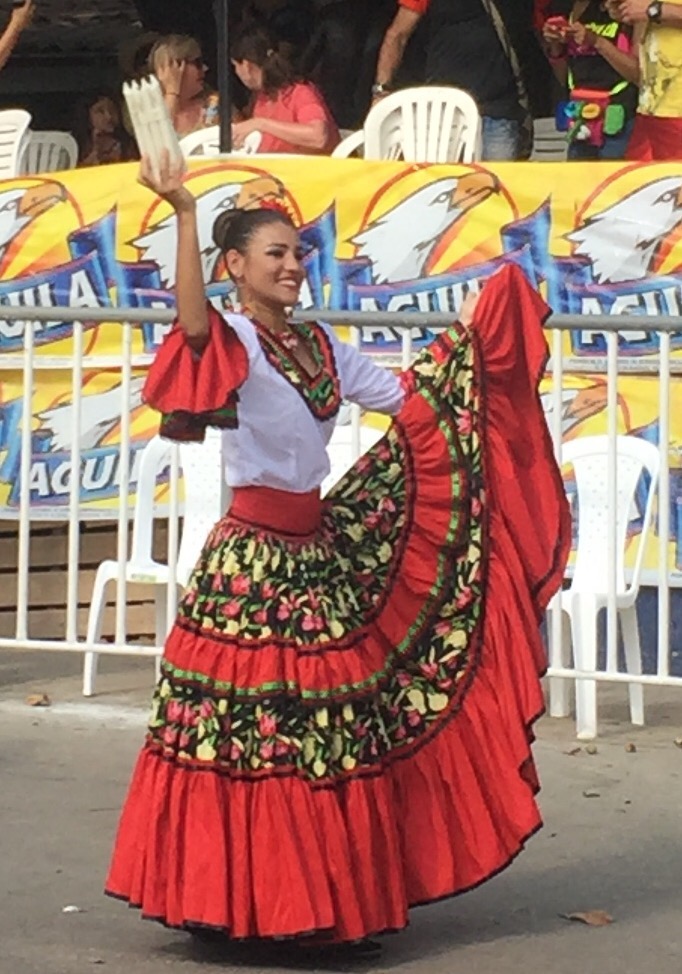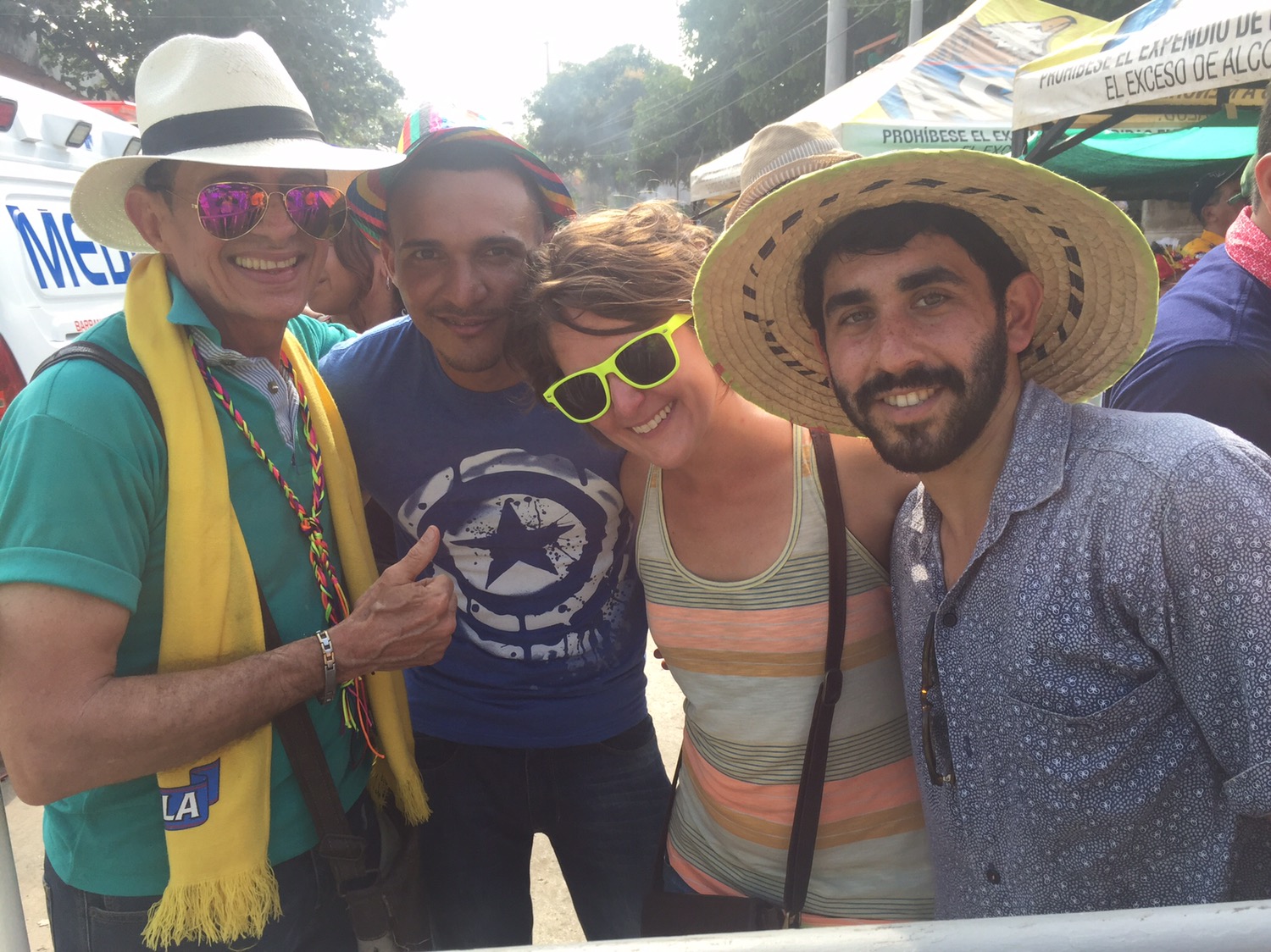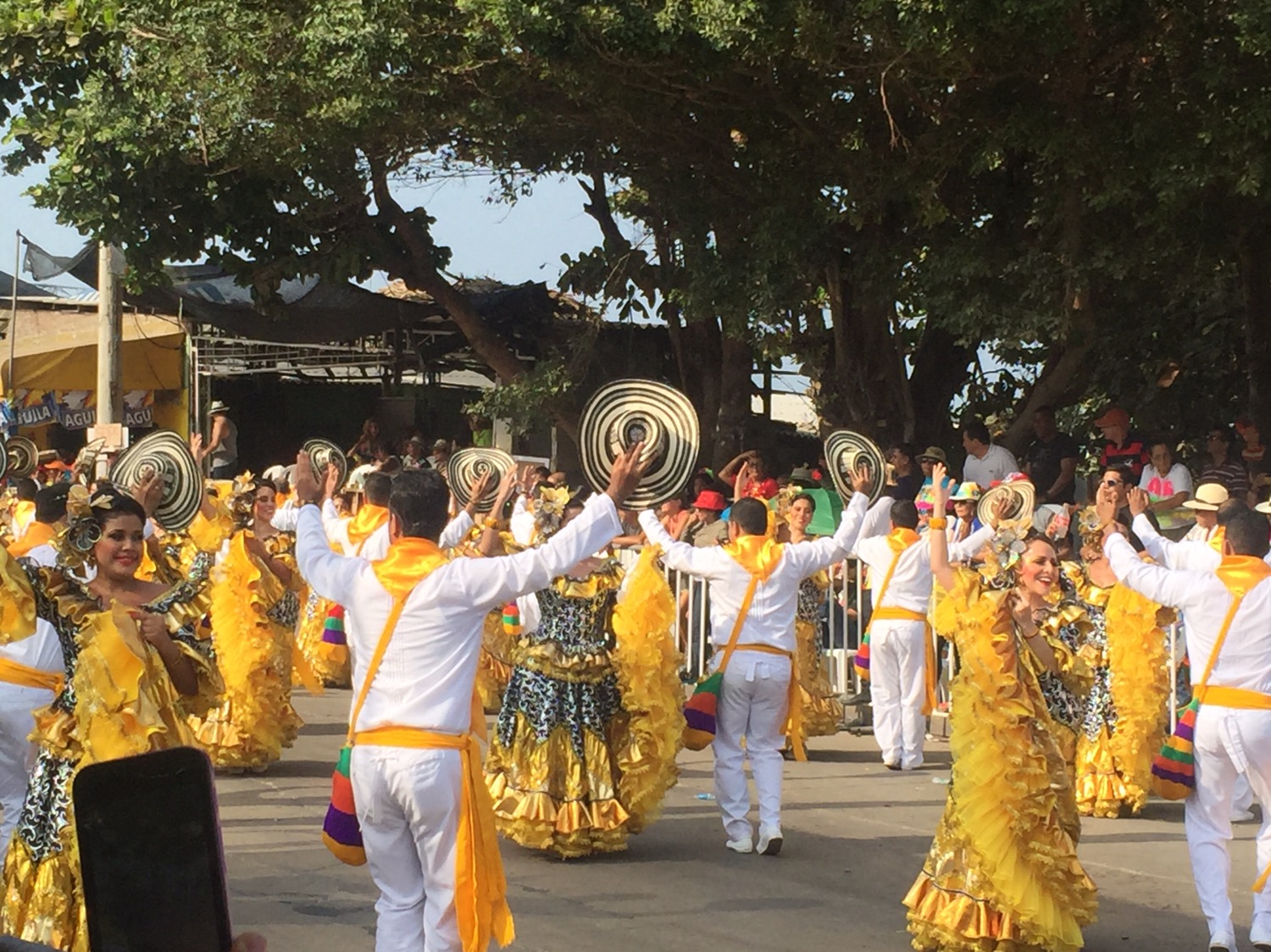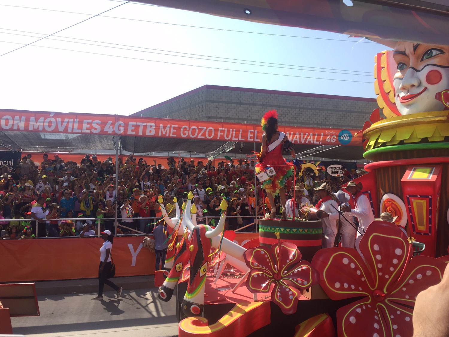 Saturday of Carnaval had the most famous parade, the Batella de Flores. The week before I’d been talking to a woman on the bus on the way to Tayrona and she asked if I had a ticket yet. This should have tipped me off, but I didn’t know the word for parade yet and assumed that she had meant night festivities. While you could find a place on the street and peek over shoulders/tents, the majority of people (locals and tourists alike) watched the parade from palcos. These were basically shaded, raised bleachers that provided for optimal viewing (and dancing). They had both palcos and mini palcos lining the streets of the entire parade route. Within the palcos, venders sold food, beverages, and hats/sunglasses.