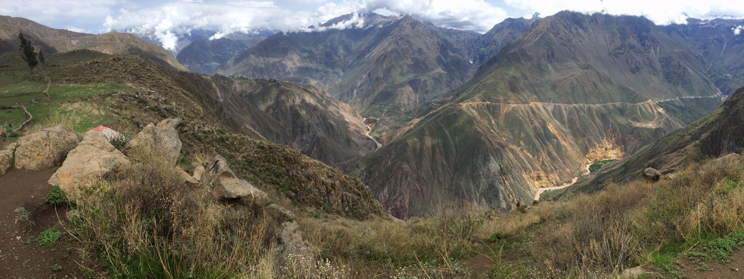 The next day, the lack of a good map turned out to be a much bigger deal. While my map made it appear that I’d be hiking along the river to the next cabana, I actually needed to hike to almost the rim of the canyon and along a path, and then back down to get to Sangalle. I also missed a landmark called “terminal bus” because its really just two roads that intersect, with no signs or markings. Its also much easier to convince yourself that you’re going the right direction when you are heading downhill, so I didn’t realize my mistake until I got down to the river and found that the path ended there. In the end, I only lost an hour, but it was a begrudging hike back up toward Llahuar, and then again up further towards the rim before hiking back down to the bottom to Sangalle. I did some more hiking through what seemed like folks’ backyards (there are several small villages in the canyon) and was able to ask for directions. Additionally, and luckily, there was a mother and daughter hiking the same path that had hired a guide, and when I ran into them on my hike back up I shamelessly asked questions/followed them until I was certain of my direction.